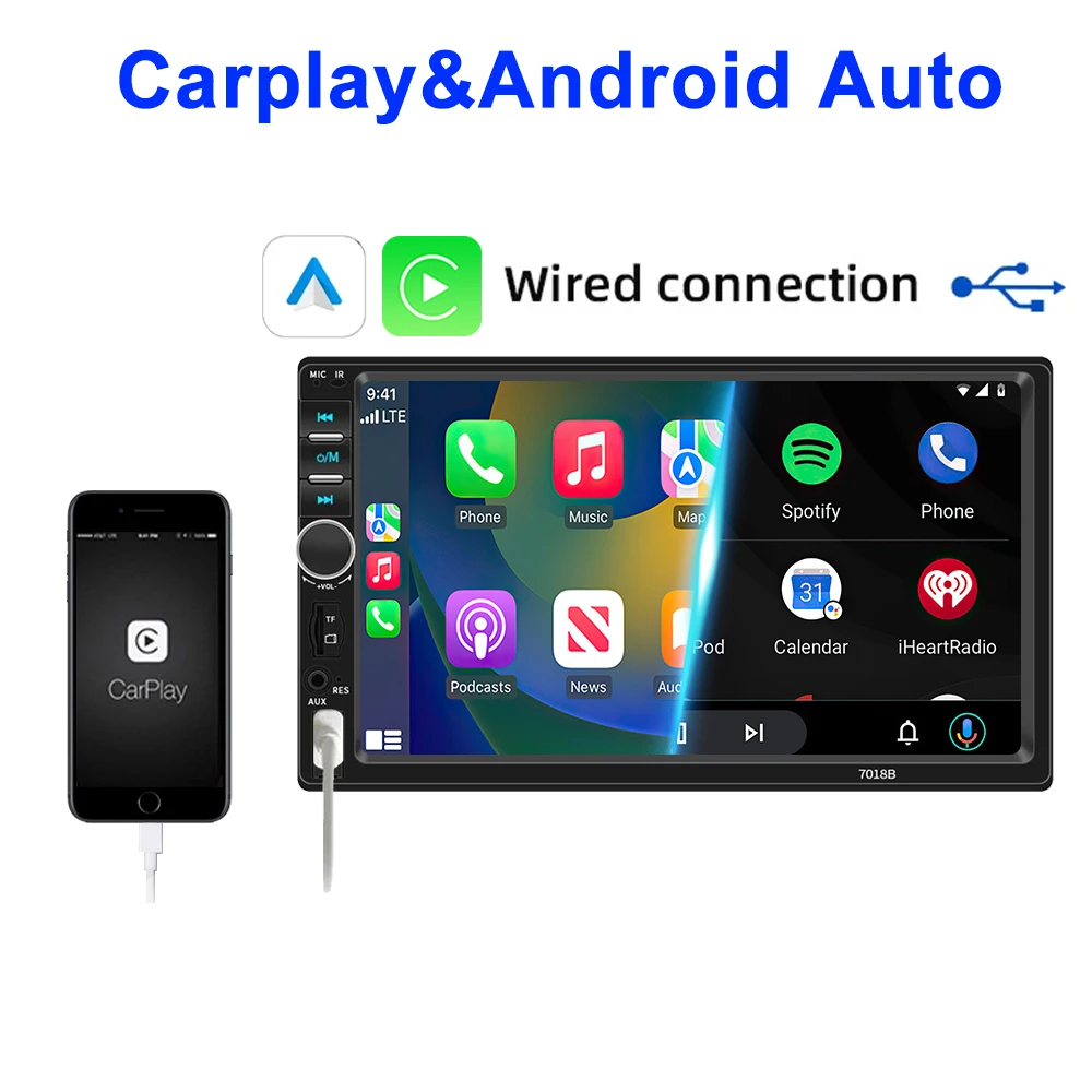 HD 7inch IPS Touch Screen Universal 1Din Caplay Android auto Car Radio Stereo Multimedia Player Autoaudio FM Receiver Monitor